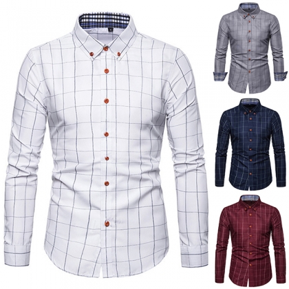Fashion Long Sleeve POLO Collar Men's Plaid Shirt