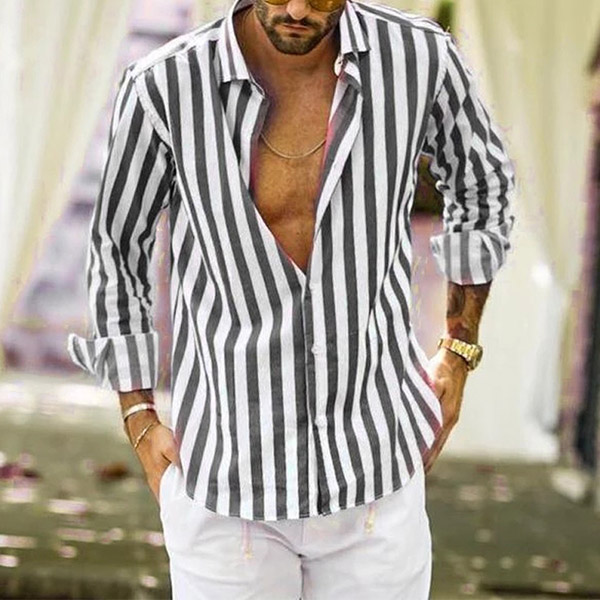 Fashion Long Sleeve POLO Collar Men's Striped Shirt