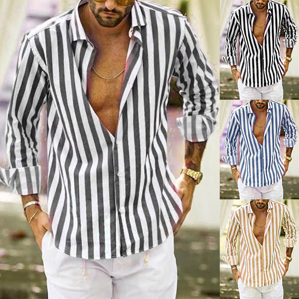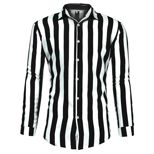 From your busy workdays or casual weekends,this shirt can give you an easy transition. It is designedwith striped element,stylish and popular. Finished with long sleeve,POLO collar and a clean silhouette,this shirt can offer you a handsome look while it maintains your male appeal.