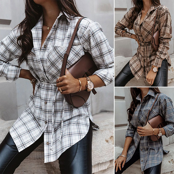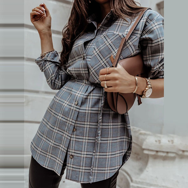 In every year's fashion elements, plaid piece always occupies a certain position.So how can your wardrobe not have such piece? This plaid shirt comes with long sleeve and POLO collar,decorated with the belt which can modify your waist line.This piece is classic and will not be out of date.