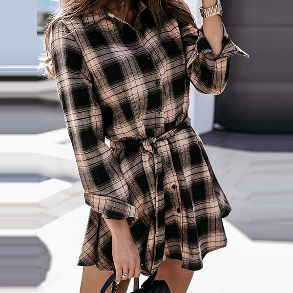 Wanna catch the fashion trend of plaid? Then we suggest you making your eyes focused on this shirt Blouse! Finished with long sleeve,POLO collar and single-breasted design,this shirt dress can give you a perfect transition from your busy workdays to weekend out with your friends.