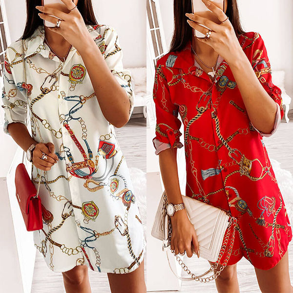 For these office ladies,a cozy yet stylish shirt dress is a wise choice. So we suggest you this piece. The chic printed details can help you draw more attention. Finished with long sleeve and POLO collar design,this shirt dress can make any girl look effortlessly charming and beautiful!