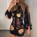 Fashion Long Sleeve POLO Collar Printed Shirt Dress