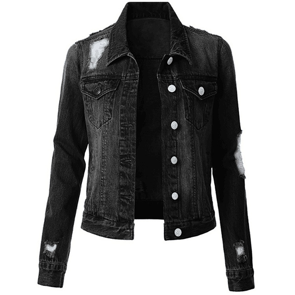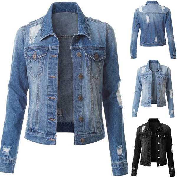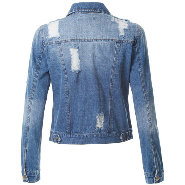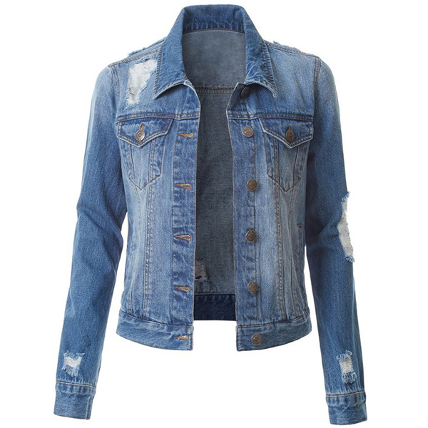 As for these cold days,this denim jacket is worth to arouse your attention. It is finished with long sleeve,POLO collar and single-breasted design,classic yet stylish. Moreover,the ripped details will further enhance its charm. Make your wardrobe more complete by adding this denim jacket.