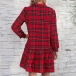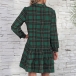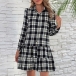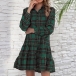 Fashion Long Sleeve POLO Collar Ruffle Hem Single-breasted Plaid Shirt Dress Cardigan