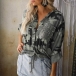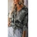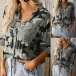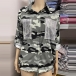 Fashion Long Sleeve POLO Collar Sequin Spliced Chest Pocket Camouflage Printed Shirt