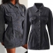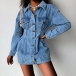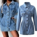 Fashion Long Sleeve POLO Collar Single-breasted Denim Coat Jacket