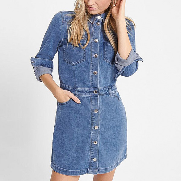 Wanna a denim dress to enrich your wardrobe? Then look no further than this piece. It is finished with long sleeve,POLO collar and single-breasted design,this denim dress can offer you a stylish look while it maintains the comfy. When the days get a little cold,this long sleeve denim dress would be your wise choice.