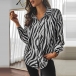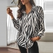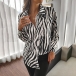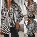 Fashion Long Sleeve POLO Collar Single-breasted Loose Stripe Printed Shirt