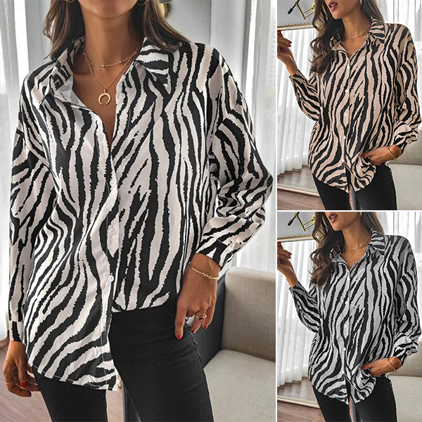 Don't like too simple,dull and formal shirts? Then you can make your eyes focused on this piece. The stripe printed details make this piece look so eye-catching. Finished with long sleeve,POLO collar,single-breasted and a loose silhouette,this piece can keep the comfy as well as offer you different matching styles.