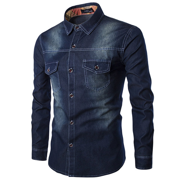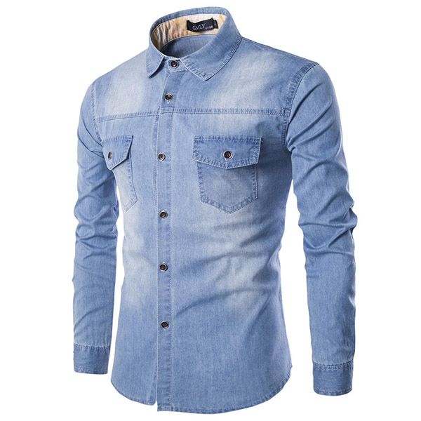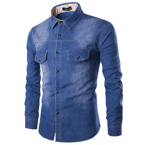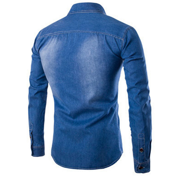 You can look stylish and handsome in this denim shirt. Finished with long sleeve,POLO collar and
