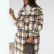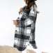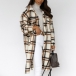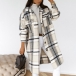 Fashion Long Sleeve POLO Collar Single-breasted Plaid Coat