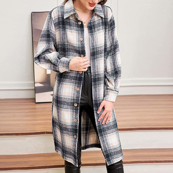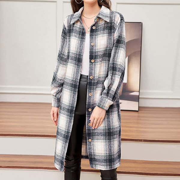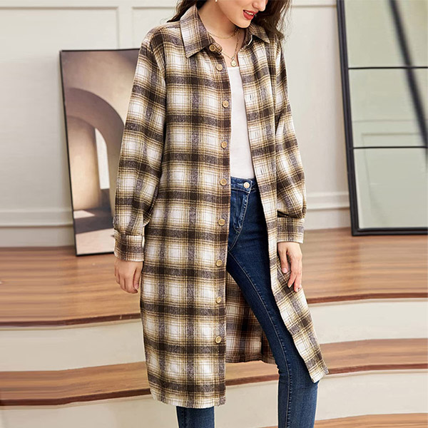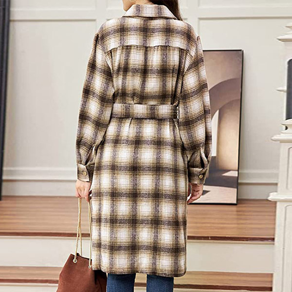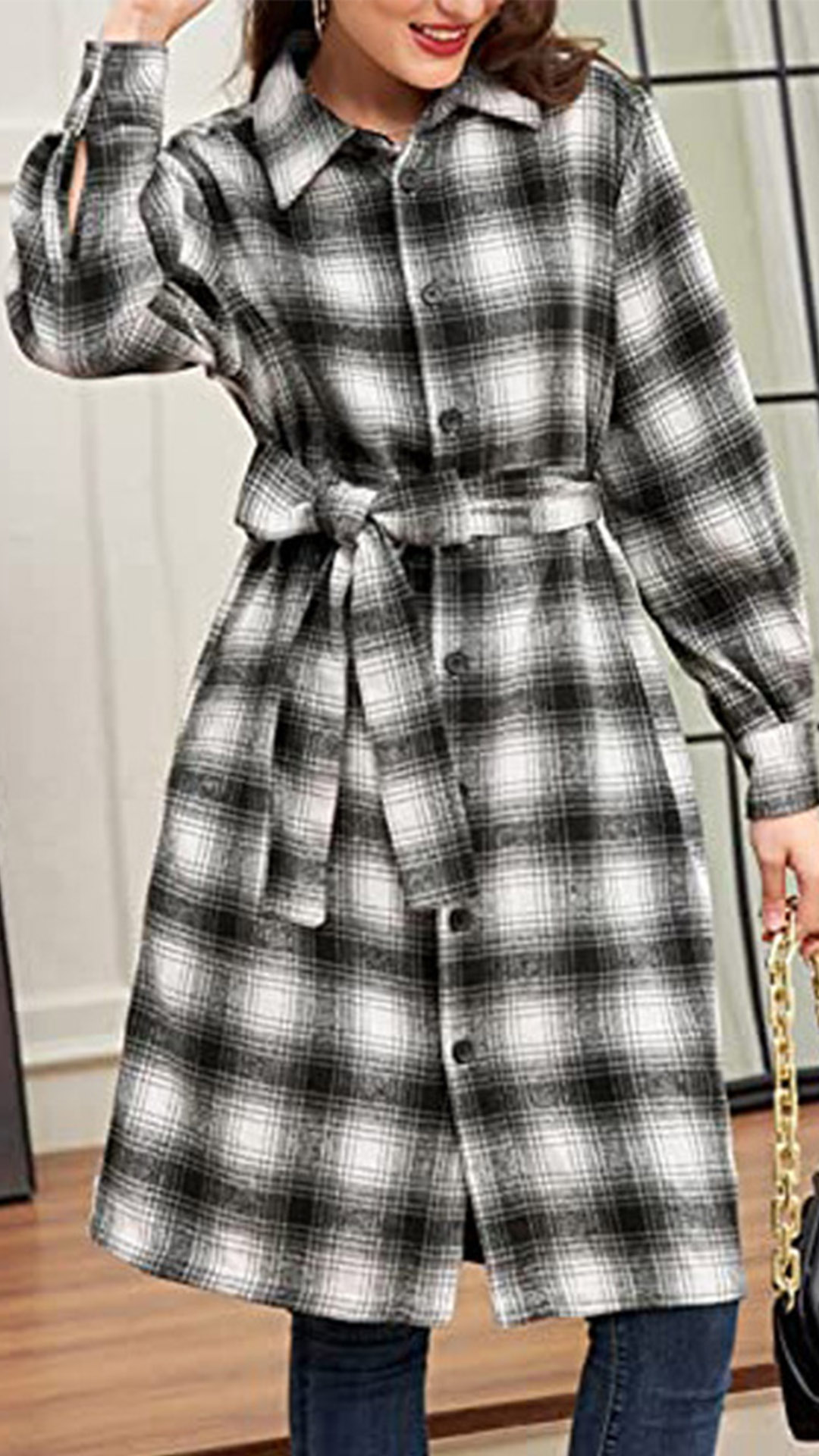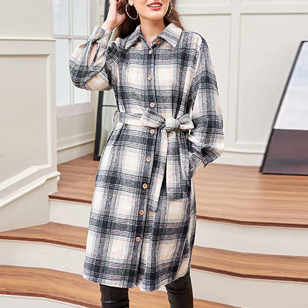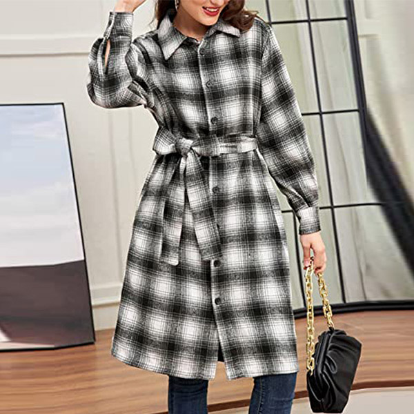 Catch up with the plaid trend with this wonderful piece. It is outfitted with long sleeve,POLO collar and single-breasted design,classic yet stylish. Come with a waist strap design,which can help enrich the design style as well as boost your charm. You can also make it as the shirt-style coat when the days get a little cold such as in the autumn days.
