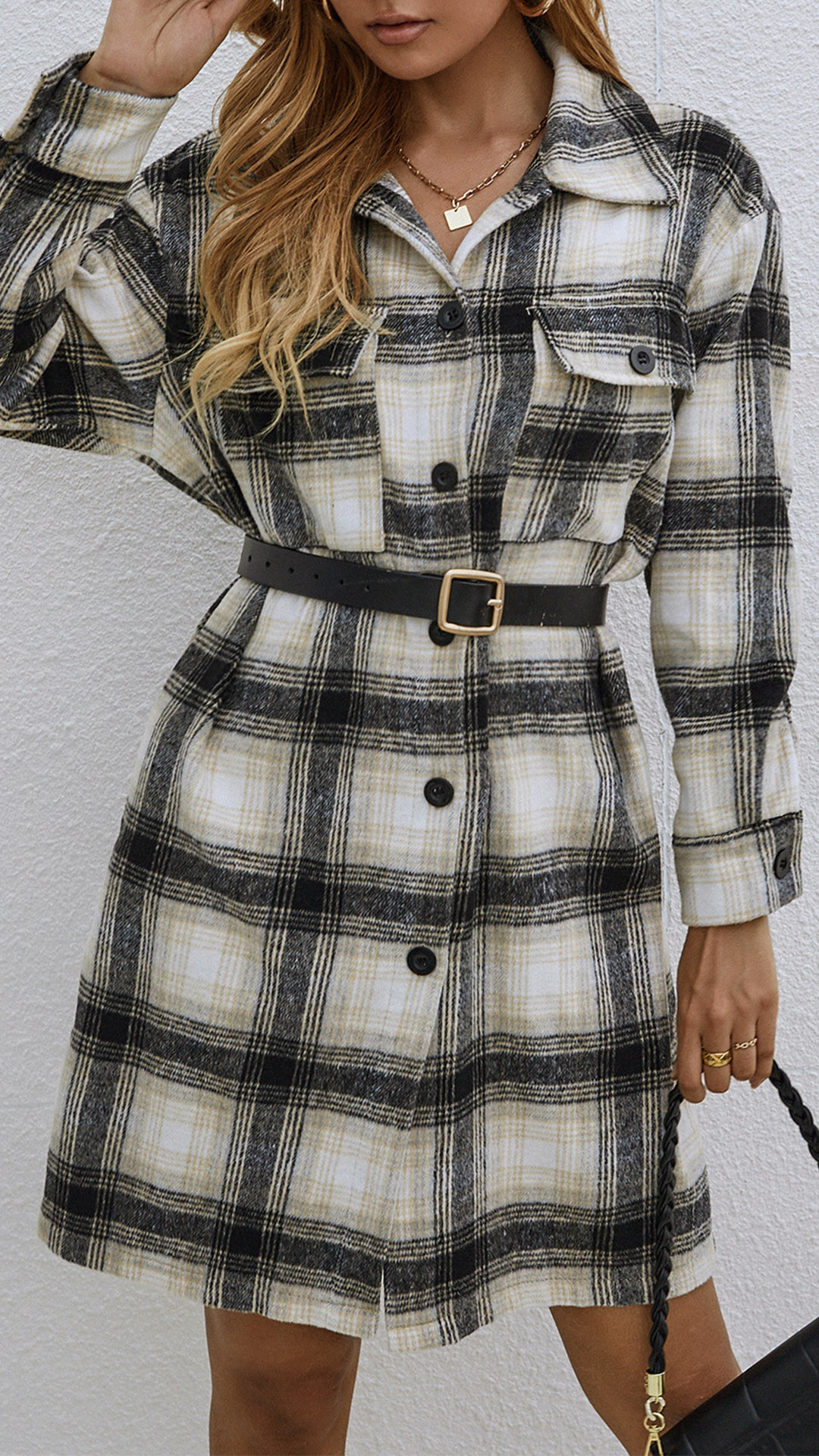 You can easily catch up with the latest fashion trend with this plaid shirt dress! Outfitted with long sleeve,POLO collar and single-breasted design,this piece definitely can give you a cozy yet stylish daily style. You can consider adding a thin waistband if you wanna look more charming and beautiful!