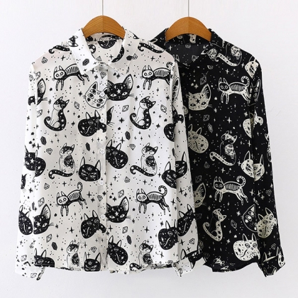 Compared with your simple and classic shirts,this piece can bring you more style. The chic printed details like cat pattern,vibrant floral print design will help you catch more eyes. Finished with long sleeve,POLO collar and single-breasted design,this shirt definitely can offer you different fashion styles by teaming with different style outfits.