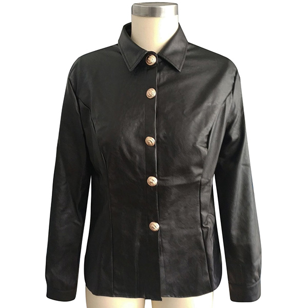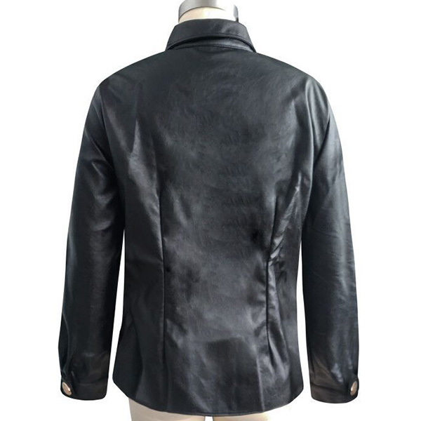 Fashion Long Sleeve POLO Collar Single-breasted PU Leather Shirt