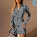 Fashion Long Sleeve POLO Collar Slim Fit Printed Dress