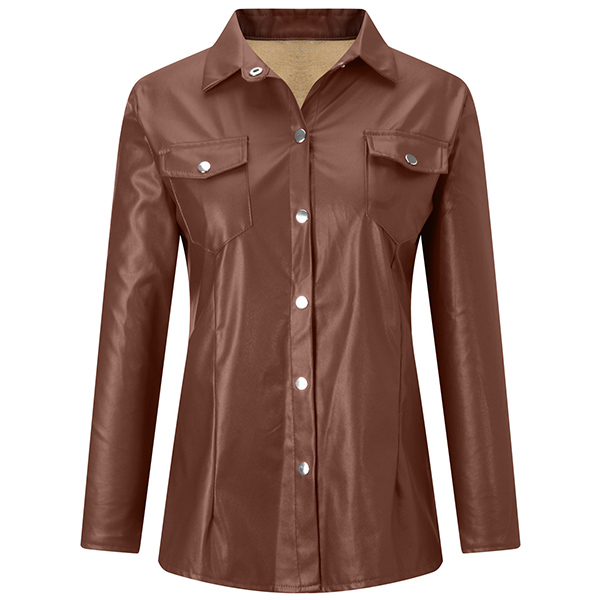 You can easily update your daily style when you wear this PU leather shirt. Finished with long sleeve,POLO collar,single-breasted and a fit silhouette,this piece not only can showcase your perfect body-line,but also can enhance your charm. And the chic printed details will make it look more eye-catching. Different colors for your optional.