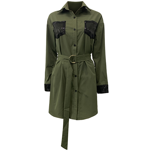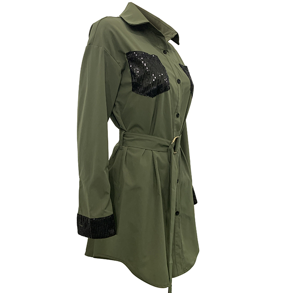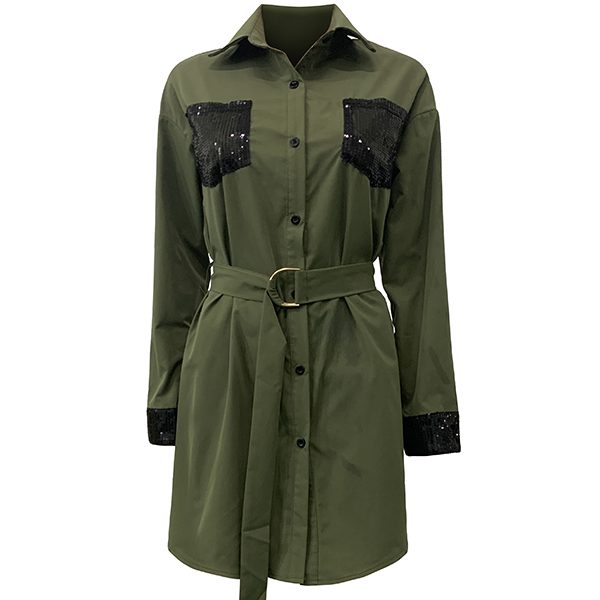 When you have no time to thank about what to wear for your busy workdays,then we suggest you choosing this shirt dress. The sequin spliced details will make this piece look more stylish and attractive. Finished with long sleeve,POLO collar and single-breasted design,this shirt dress can make you look stylish and delicate.