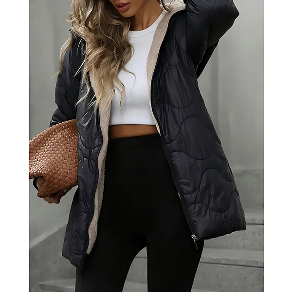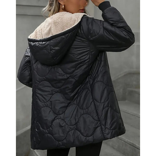 Fashion Long Sleeve Qulited Plushed Lined Hooed Coat