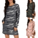 Fashion Long Sleeve Round Neck Camouflage Printed Dress