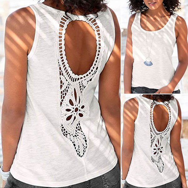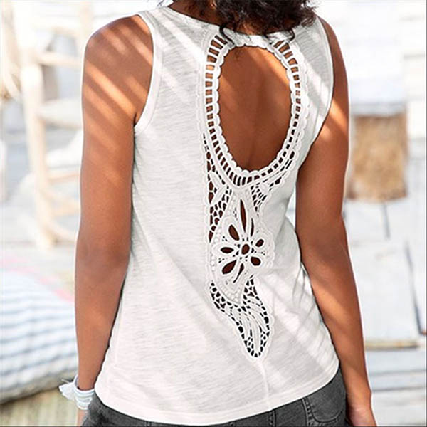 For these hot summer days,this tank top is worth to arouse your attention. Solid color style,the backless and hollow out crochet spliced design at the back side make this piece look so sexy,flirty and distinctive. Your style and charm can have a boost when you don this piece.