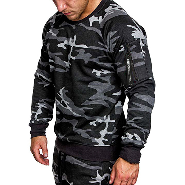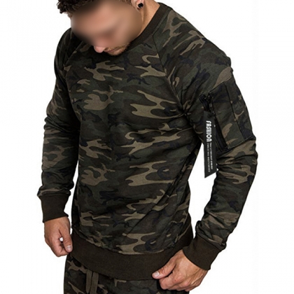 Hey,man,you can enrich your wardrobe by adding this t-shirt! The camouflage printed details make it look so eye-catching and stylish. Finished with long sleeve,round neck and a clean silhouette,this t-shirt can offer you a comfortable day with its soft and breathable fabric. Your perfect choice on those casual days.