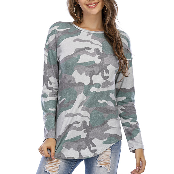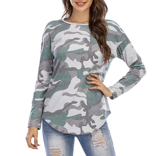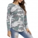 Fashion Long Sleeve Round Neck Camouflage Printed T-shirt