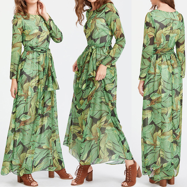 Its vibrant floral print makes this piece so vivid and eye-catching. Styled with long sleeve,round neck and a maxi length,