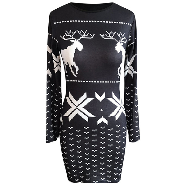 When you don't know what to wear for the coming Christmas Day,then you can make your eyes focused on this dress. The Christmas printed details can make this piece more matching with the festival atmosphere,while the fit silhouette design will showcase your slender figure. You can trust in this piece to have a memorable time!