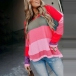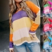 Fashion Long Sleeve Round Neck Colorful Striped T-shirt