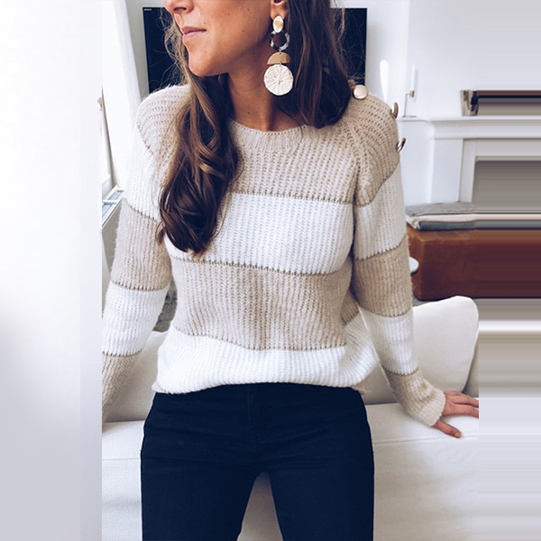 As for these cold days,this cozy yet stylish sweater is worth to be your wardrobe staple. Contrast color