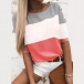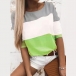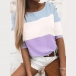 Fashion Long Sleeve Round Neck Contrast Color T-shirt