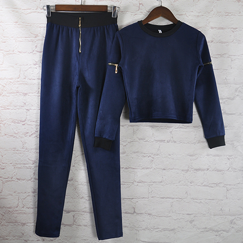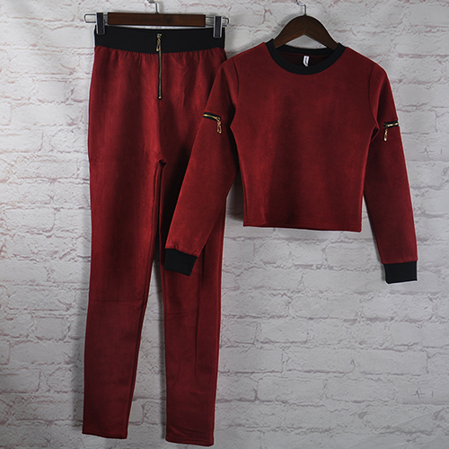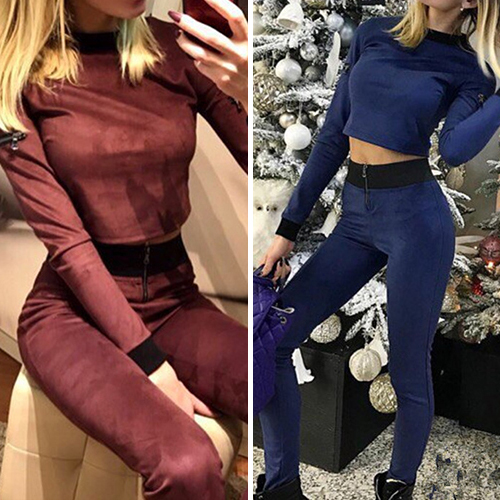 Solid color style,including a long sleeve round neck crop top and a high waist pants,this two-piece set of course