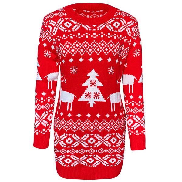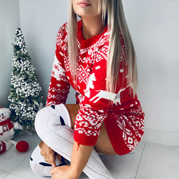 When the days get a little cold,this knit top can be your wise choice. It is finished with long sleeve,round neck and a fit silhouette,this dress can showcase your slender figure. Moreover,the elk printed pattern design can lend you a dash of cute and playful vibes. It is worth to be your new darling in these cold days.