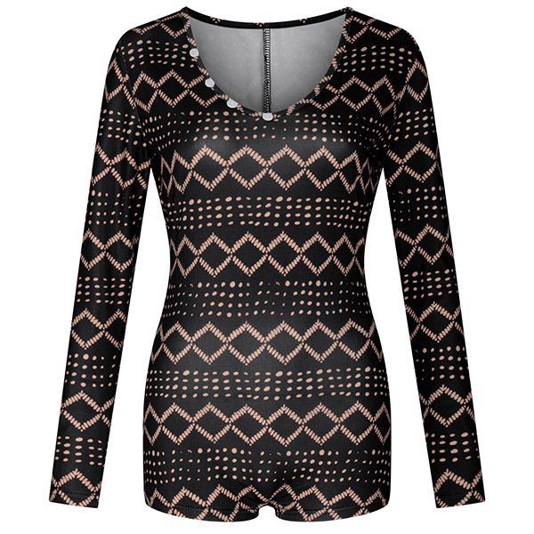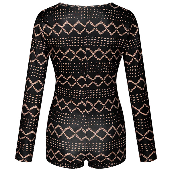 Fashion Long Sleeve Round Neck Front-button Printed One-piece Swimsuit