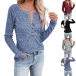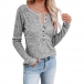 Fashion Long Sleeve Round Neck Front-button T-shirt