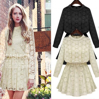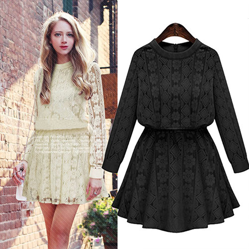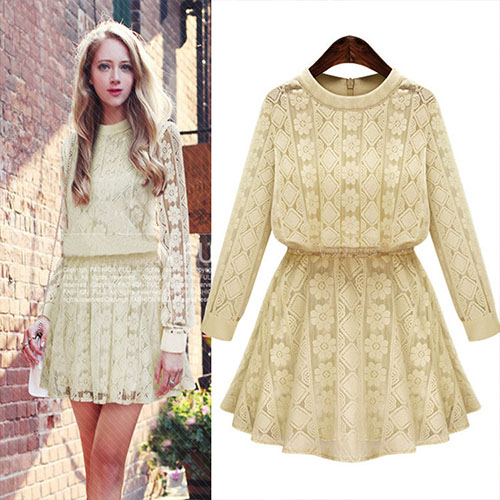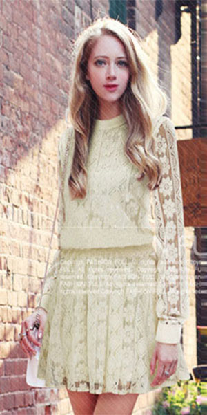 You can not be more stylish and charming once you wear this dress! Lace crochet style,with long sleeve,