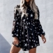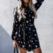 Fashion Long Sleeve Round Neck Gathered Waist Pentagram Printed Dress