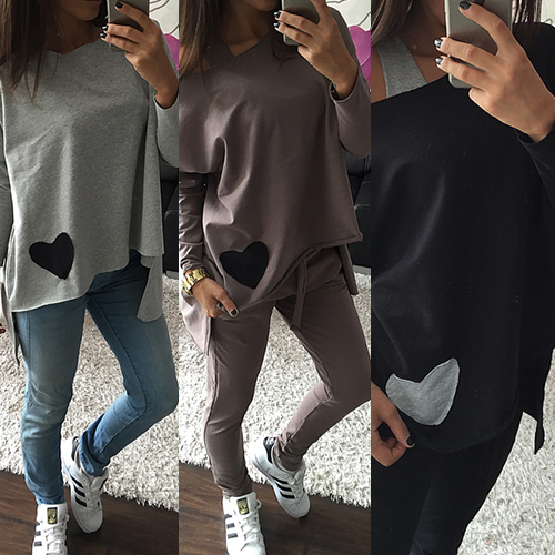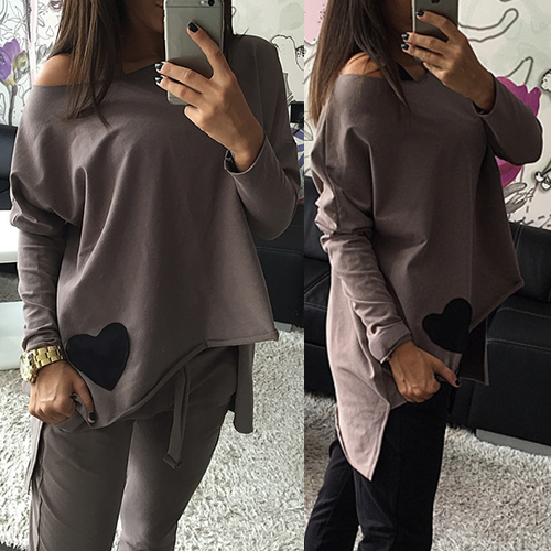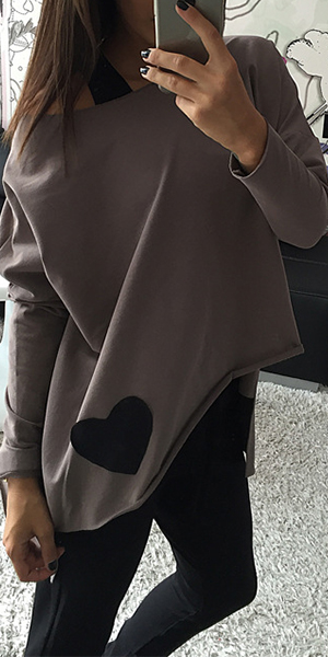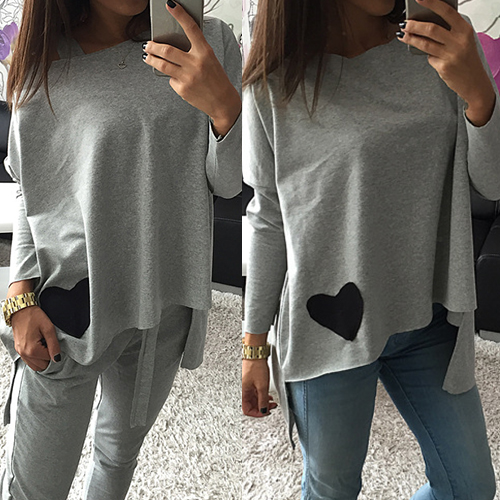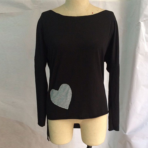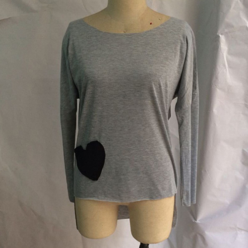 high-low hem design. And its heart pattern design makes this t-shirt look not so simple and monotonous.