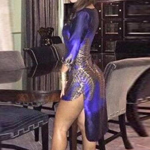 just what you need. Features abstract printed pattern,with long sleeve,round neckline