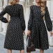 Fashion Long Sleeve Round Neck High Waist Dots Printed Dress