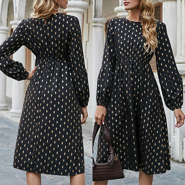 When you wanna update your daily style,you can just slip into this dress. The dots printed details make this piece look more eye-catching and playful. Finished with long sleeve,round neck and high waist design,this dress can portray your slender figure. Dress it up with your sexy heels for a beautiful look.