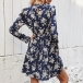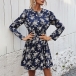 Fashion Long Sleeve Round Neck High Waist Printed Dress