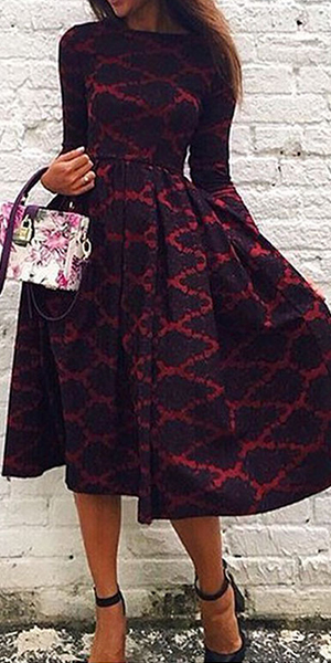 Looking for a simple but stylish look? This long-sleeved dress is your best bet. Printed style,