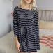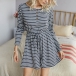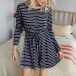 Fashion Long Sleeve Round Neck High Waist Striped Romper