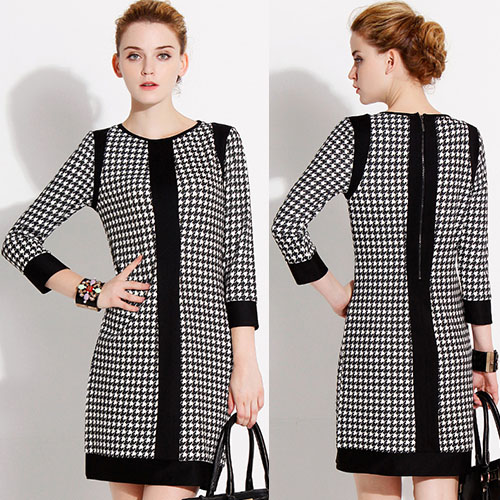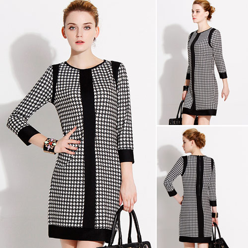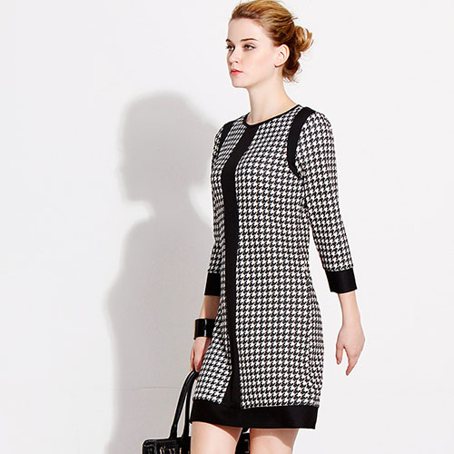 Houndstooth style,with long sleeve,round neck and slim fit design,can perfect show