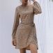 Any girl can look effortlessly charming and beautiful in this dress. Features leopard printed details,which make it look so eye-catching. Finished with long sleeve,round neck and an irregular hem,this wonderful dress can give you a perfect transition from your daytime out to night dating.