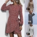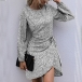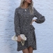 Fashion Long Sleeve Round Neck Irregular Hem Leopard Printed Dress