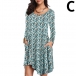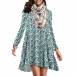 Fashion Long Sleeve Round Neck Irregular Hem Printed Dress